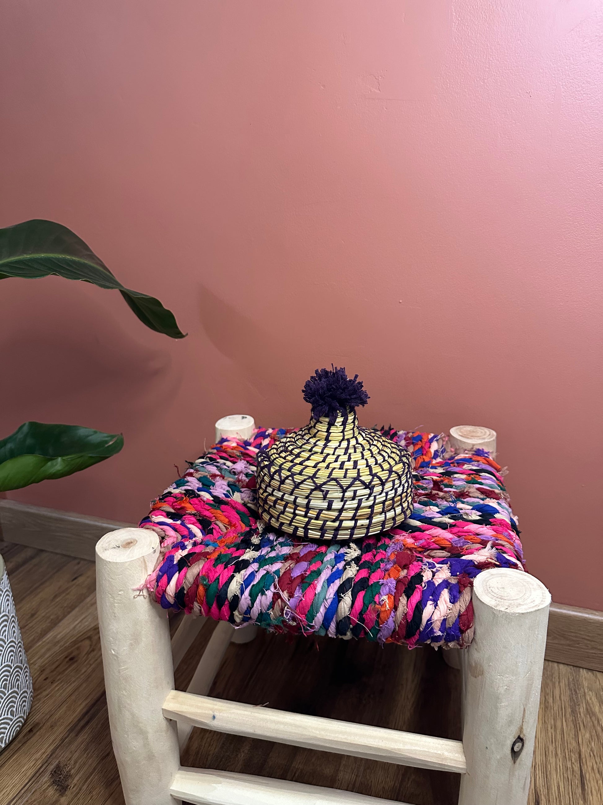 Tressés à la main à Marrakech, à partir de jonc naturel et de laine colorée, ils allient authenticité, savoir-faire et charme bohème.