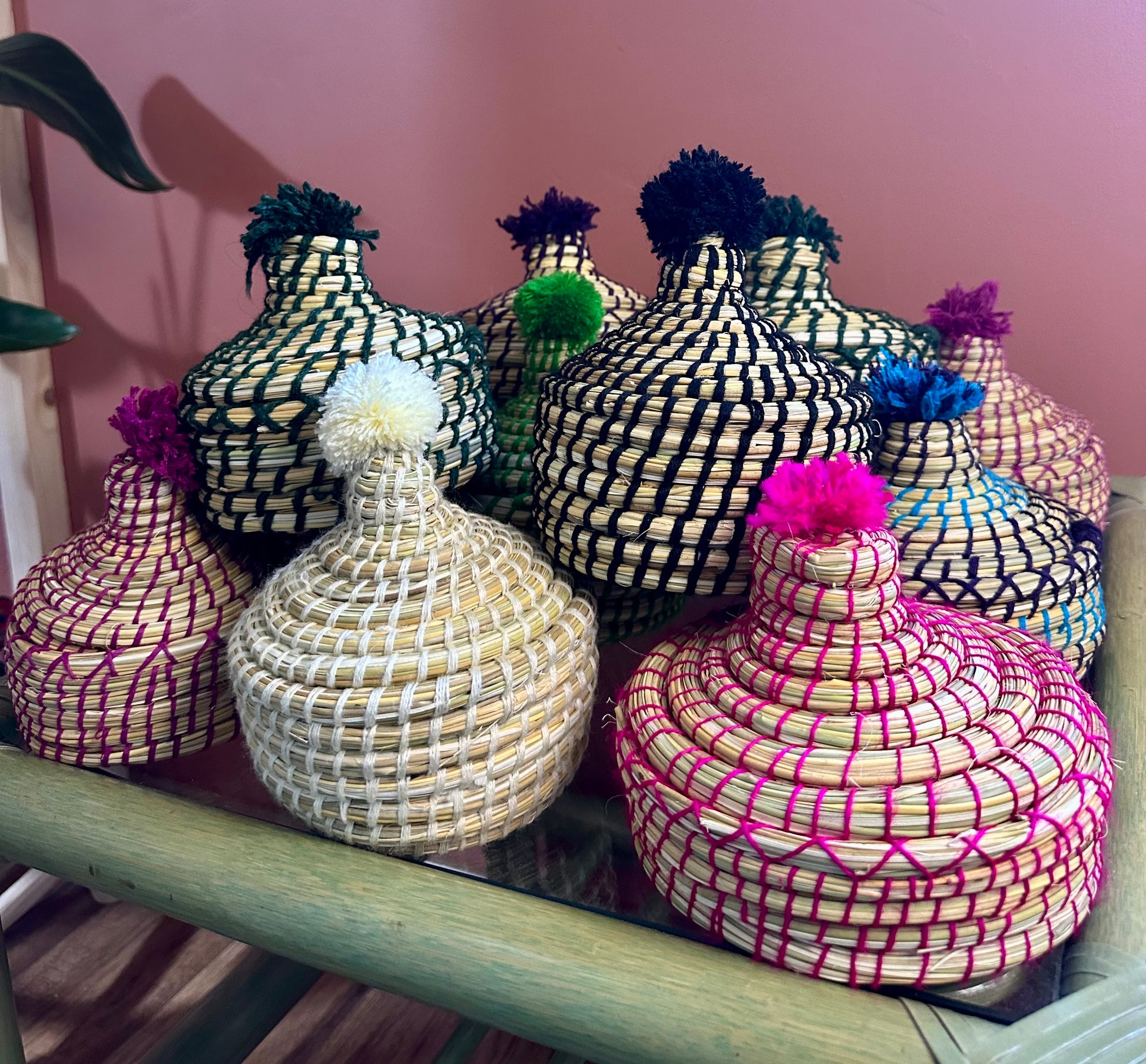 Mini Panier Berbère – Vide-Poche en Jonc et Laine Artisanale – Fait Main à Marrakech
