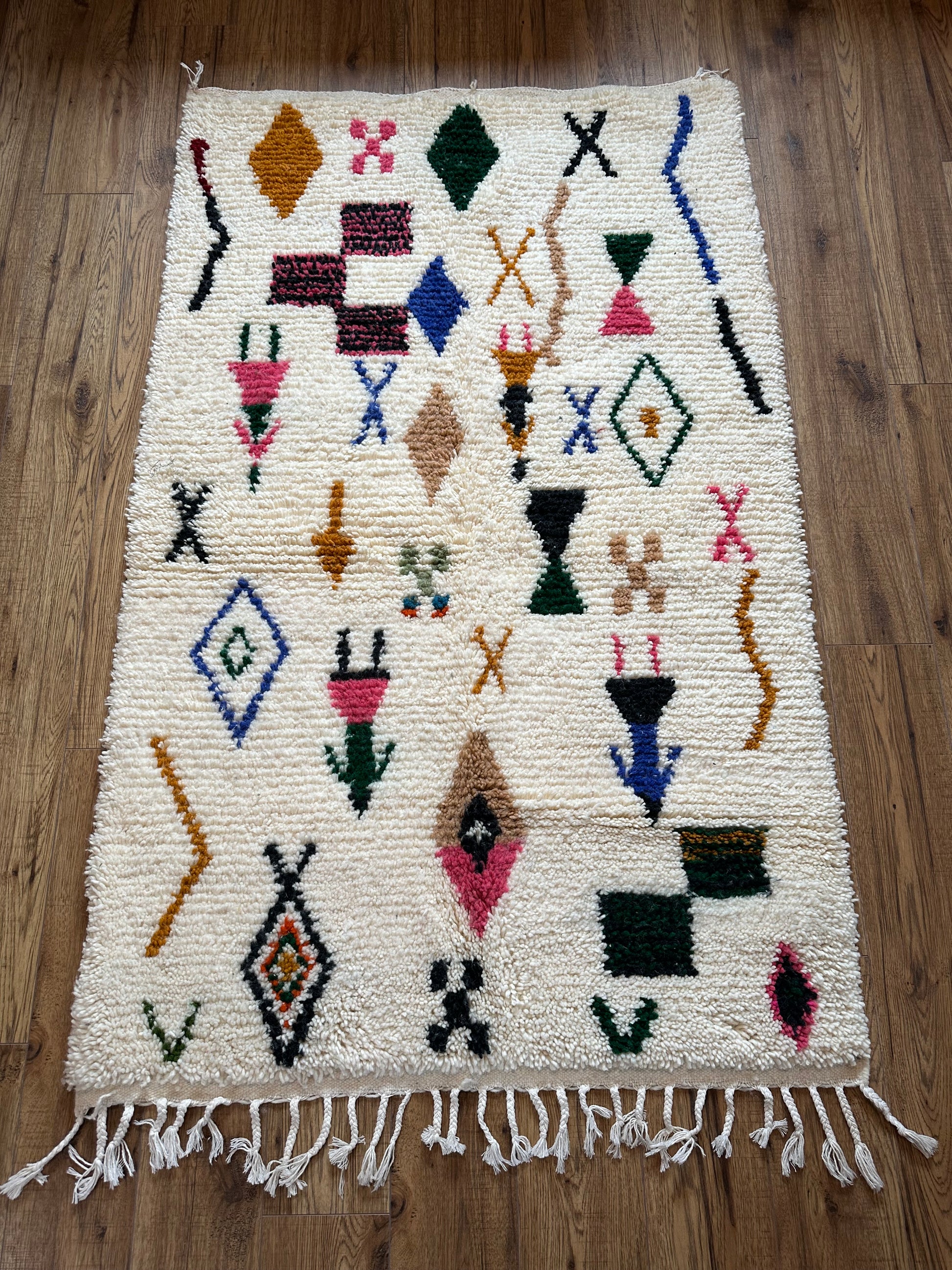 Nom : Tapis Beni Ourain berbère motifs colorés