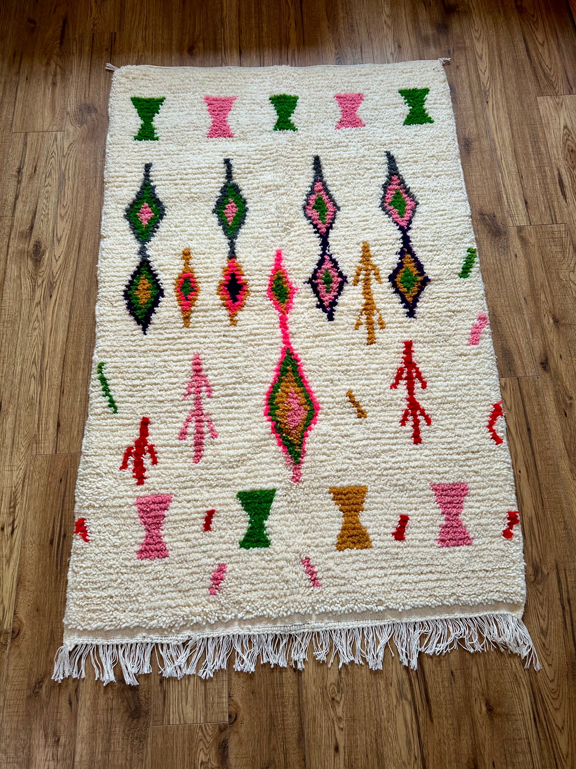 Tapis Beni Ourain Coloré en Laine Naturelle – Fait Main (165 x 103 cm