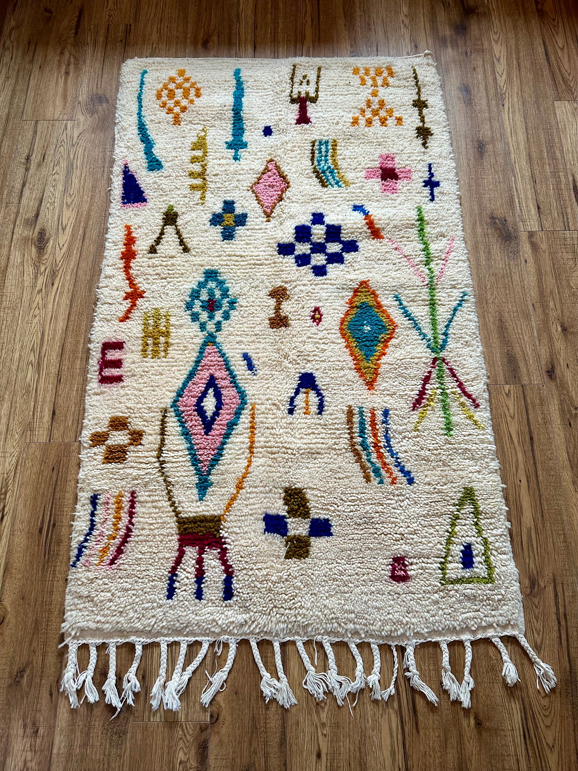 Tapis Beni Ourain Multicolore en Laine Naturelle – Fait Main (167 x 99 cm)
